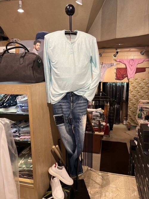 サマーバカンスアイテム第6弾が入荷いたしました! 【ヘンリーネックロングティシャツ】 素材:麻(97%)、ストレッチ(3%) カラー:ペパーミントグリーン(1色展開) 【デニム】 綿(99%)、LYCRA(1%) ぜひお店にお立ち寄りくださいませ!